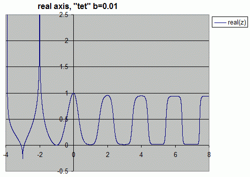 RE: Why bases 0<a<1 don't get love on the forum? - sheldonison - 04/15/2015 (04/14/2015, 08:49 PM)marraco Wrote: I conjecture that tetration base 0 should be a discontinuous function, alternating between the values 0 and 1, with period 2, and as the base approach zero, the negative axis turns into a real, continuous function.Maybe; first figure out the bases in between... Quote:The derivative must converge to a periodic and alternating Diract Delta, multiplied by c₁-c₂, and the surface of each "Diract" must be constant on the positive axis. Cool stuff! I think the next step is to figure out the Taylor series using some of the techniques we've developed for Tetration. Here, I spent a few minutes generating a four term series approximation using a variant of Andrew's slog technique. This approximation is good between z=-1, and z=0. Taking the \( \ln(\text{tet}(z))\approx \text{tet}(-1+z)\; \); the 2nd derivative is continuous for a piecemeal approximation. The other boundary requirements are: tet(0)=1; tet(-1)=0; tet'(0)=0; tet'(-1)=0; \( \text{tet_{0.01}(z) \approx 1 -4.92955971 \cdot z^2 - 5.85911942 \cdot z^3 -1.92955971 \cdot z^4 \) The tet(z) function is real valued for z>-3.9... surprisingly remaining real valued after the logarithmic singularity at -2. I expect there is a unique solution for the complex plane, which can be developed using Kneser's Riemann mapping and the equivalent \( \theta(z) \) mapping techniques we've invented ... which should be really interesting too! We expect this function to approach two of the function's other complex fixed points, and its conjugate, as \( \Im(z) \) gets arbitrarily large, positive or negative. RE: Why bases 0<a<1 don't get love on the forum? - MorgothV8 - 04/15/2015 Did anybody tried tetrations with negative bases, are there some special intervals here (like we have e^-e and e^(1/e)) on positive axis side? So far I see that there should be at least 4 differnt tetration classes: z < 0 e^-e > z > 0 e^(1/e) > z > e^-e z > e^-e And special cases: e^-e e^(1/e) and maybe 0? Is there any general summary of tetriation behavior in all those cases? Best Regards. RE: Why bases 0<a<1 don't get love on the forum? - tommy1729 - 04/15/2015 Plot exp(-exp(-x)) then you see why its not so popular. It has a Nice nonparabolic fix yet it is not nice. Notice the limits at - , + infinity. Regards tommy1729 RE: Why bases 0<a<1 don't get love on the forum? - JmsNxn - 04/15/2015 I have a conjecture I haven't been able to prove. I think the Fractional Calculus approach I took for hyper operators in between 1 and eta will work for bases inbetween \( e^{-e} \le b < 1 \) To be explicit: \( (^z b) = \frac{1}{\G(1-z)} (\sum_{n=0}^\infty (^{n+1} b) \frac{(-1)^n}{n!} + \int_1^\infty (\sum_{n=0}^\infty (^{n+1} b) \frac{(-w)^n}{n!}) w^{-z}\,dw) \) This is of course if there exists an exponentially bounded solution. Since these bases do not induce a periodic tetration there requires more thought into how to solve this case. Constructing the Koenigs function \( \psi \) of \( b^z \) produces a function \( \psi(b^z) = \lambda \psi(z) \) where \( -1 < \lambda < 0 \). Using regular Koenig iteration we can construct a tiny area about the fixed point \( z_0 \) which \( \psi^{-1} (z) \) exists. If we can induce the Koenigs function such that \( \exp_b^{\circ s+n} (z) = \psi^{-1}(\lambda^{s+n}\psi(z)) \) is a well defined function for \( |z - z_0 |<\delta \) and \( n \) large enough so that this function is defined for all \( \Re(s) > 0 \) we can extend this to all \( z \) in the immediate basin (including 1) using Fractional Calculus and similar techniques that I used here. This would give \( \exp_b^{\circ s+n}(1) = (^{s+n} b) \), and then using more tricks \( ^s b \) can be recovered. The trick is of course ensuring that \( \psi^{-1}(\lambda^{s+n}\psi(z)) \) defined for \( s \) in some \( \Omega \) can be analytically continued to the right half plane, and then further is appropriately bounded. This would require analytically continuing the koenig function and as well its inverse. Unless someone knows if there exists a solution such that \( |(^z b)| < M e^{\rho |\Re(z)| + \alpha |\Im(z)|} \) for \( M,\rho, \alpha \in \mathbb{R}^+ \) with \( \alpha < \pi/2 \), I see no other way of making this method work. However there is excitement, because certain holomorphic functions with a multiplier that is not real positive and between 0 and 1 can be complex iterated using fractional calculus. To give further motivation of this technique, consider the function \( \phi_\lambda(\xi) = \lambda \xi + \sum_{n=2}^\infty a_n\xi^n \) for \( 0 < \lambda < 1 \) We can iterate this using fractional calculus and for \( \xi \) in the immediate basin of attraction, z in the right half plane, \( \phi^{\circ z}_\lambda(\xi) \) is analytic in \( \lambda \) and consequently the iterate must converge in the Fractional calculus transform for \( \lambda \) in an epsilon neighbourhood of (0,1). The suspicion is that it will converge for all \( 0<|\lambda|<1 \) on suitable \( \phi \). I'm betting the exponential function is one of these suitable functions. RE: Why bases 0<a<1 don't get love on the forum? - sheldonison - 04/16/2015 Conjecture: For all bases between \( 0<b<1 \), there are a pair of complex conjugate fixed points. Each of these fixed points has a Koenig solution, that can be used to generate a complex valued superfunction. Such a Koenig solution is entire, and never takes on the value of 0. The conjecture is the pair of Koenig complex superfunctions can be Kneser (Riemann) mapped (or equivalently) theta mapped, to a Tetration solution that is real valued between the singularity at -2, and infinity. Such a solution would be like tetration for bases>\( \eta=\exp(1/e) \) analytic if \( \Im(z)>0 \) or \( \Im(z)<0 \) and at the real axis, for z>-2, with singularities at -2, -3, and other values <-3. For tetration bases \( 0<b<1 \), there is a primary real valued fixed point, with a negative \( \lambda