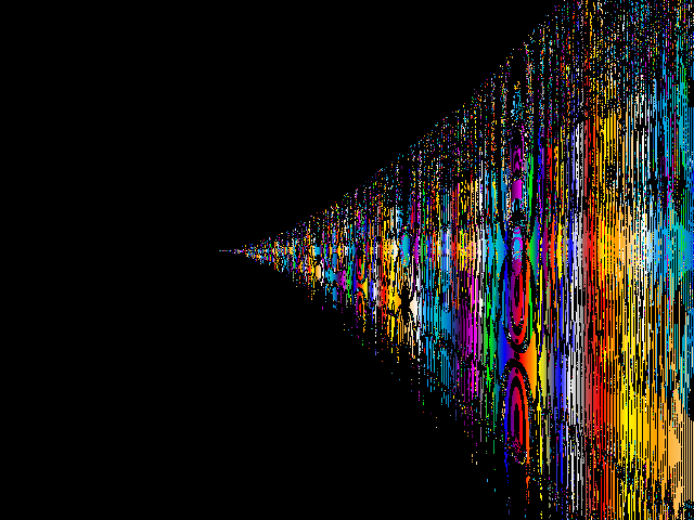 RE: Fractals from calculations of 2^I, 2^(2^I), 2^(2^(2^I).. a^(a^(...a^I) - Ivars - 05/21/2008 Hi Henryk But why would a^(a^(a^.......a^I) lead to the same limit as h(a), namely w such that a=w^(1/w) ? The way it goes step by step is totally different because iteration starts as complex number.... So we can map the trajectories, how they converge, whereas in purely real number case we can not. why: \( a^{(a^{(a^{...(a^I)}}}= h(a) \)??? I do not understand this, and is this even true? On otherhand, it may be a useful tool to see the differences between various real bases a as trajectories will be different. Can You please tell me how can I plot these trajectories for e.g. integer iterations? I am ready to learn another piece of software, perhaps PARI or even SAGE- this map is so simple that programming should not be too difficult. Ivars RE: Fractals from calculations of 2^I, 2^(2^I), 2^(2^(2^I).. a^(a^(...a^I) - Ivars - 05/22/2008 Since this is my first fractal map, it is interesting to see another different pattern ending at another important point on real axis: \( e^{-\pi/2} \): Ivars |