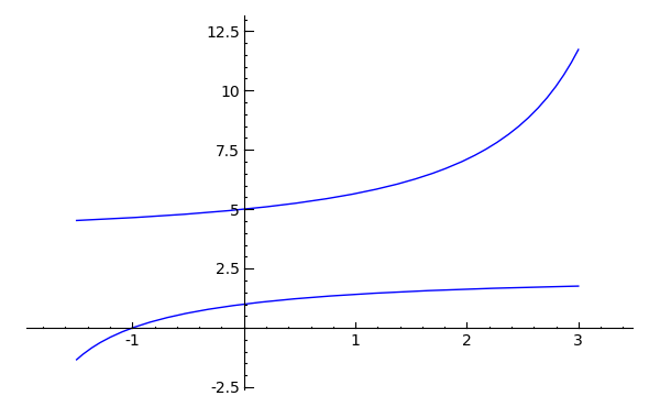 The upper superexponential - bo198214 - 03/29/2009 As it is well-known we have for \( b<e^{1/e} \) the regular superexponential at the lower fixed point. This can be obtained by computing the Schroeder function at the fixed point \( a \) of \( F(x)=b^x \). More precisely we set \( G(x)=F(x+a)-a = b^{x+a}-a=b^a b^x -a = a b^x -a = a(b^x-1) \) This is a function with fixed point at 0, it is the function \( F \) shifted that its fixed point is at 0. We compute the Schroeder function \( \chi \) of \( G \), i.e. the solution of: \( \chi(G(x))=c\chi(x) \) where \( c=G'(0)=a\ln(b)=\ln(b^a)=\ln(a) \). This has a unique analytic solution with \( \chi'(0)=1 \). Then we get the super exponential by \( \operatorname{sexp}_b(t)=a+\chi^{-1}(c^x \chi(y_0) \) \( y_0 \) is adjusted such that \( 1=\operatorname{sexp}_b(0)=a+\chi^{-1}(\chi(y_0))=a+y_0 \) i.e. \( y_0=1-a \). This procedure can be applied to any fixed point \( a \) of \( b^x \). The normal regular superexponential is obtained by applying it to the lower fixed point. Now the upper regular superexponential \( \operatorname{usexp} \) is the one obtained at the upper fixed point of \( b^x \). For this function we have however always \( \operatorname{usexp}(x)>a \), so the condition \( \operatorname{usexp}(0)=1 \) can not be met. Instead we normalize it by \( \operatorname{usexp}(0)=a+1 \), which gives the formula: \( \operatorname{usexp}_b(t)=a+\chi^{-1}\left(\ln(a)^x \chi(1)\right) \) The interesting difference to the normal regular superexponential is that upper on is entire, while the normal one has a singularity at -2 and is no more real for \( x<-2 \). It is entire because the inverse Schroeder function \( \chi^{-1} \) is entire, it can be continued from an initial small disk of radius r around 0 By the equation \( \chi^{-1}(c^n x)=G^{[n]}(\chi(x)) \) We know that \( c>1 \) thatswhy we cover the whole complex plane with \( c^nx \), \( x \) from the initial disc around 0, and we know that \( G^{[n}] \) is entire. Here are some pictures of \( \operatorname{sexp} \) that are computed via the regular schroeder function as powerseries for our beloved base \( b=\sqrt{2} \), \( a=2,4 \): and here the upper super exponential base 2 alone: RE: The upper superexponential - andydude - 03/31/2009 wow, how bizarre... RE: The upper superexponential - bo198214 - 03/31/2009 Ansus Wrote:But this does not satisfy the functional equation of tetration, yes? It satisfies all except \( f(0)=1 \). RE: The upper superexponential - bo198214 - 03/31/2009 Ansus Wrote:So it is iterated exponential rather than tetration? Does it have asymptote? Yes \( y=4 \) for \( x\to -\infty \) RE: The upper superexponential - sheldonison - 04/03/2009 bo198214 Wrote:....Does this upper super expoonential equation also hold for b=\( e^{1/e} \)? Is this "chi" the same as the "Chi distribution" used in probability? Any links to a definition for \( \chi \) and \( \chi^{-1} \) RE: The upper superexponential - bo198214 - 04/03/2009 sheldonison Wrote:Does this upper super expoonential equation also hold for b=\( e^{1/e} \)? Interesting question. Unfortunately the convergence gets quite bad for \( b \) approaching \( e^{1/e} \), so I could not really check numerically. On the other hand Walker describes also two solutions for \( b=e^{1/e} \) in "On the solutions of an Abelian equation". I did not really read this article, but I think he also showed that these solutions are not the limit of approaching \( e^{1/e} \). Quote:Is this "chi" the same as the "Chi distribution" used in probability?No, not at all. Its just somewhat similar to "Sch" in Schroeder. Quote: Any links to a definition for Ya, for example in the thread regular slog. Literature is: Szekeres "Regular iteration of real and complex functions." RE: The upper superexponential - sheldonison - 04/05/2009 bo198214 Wrote:....Kouznetsov has graphs of the lower super exponential for \( b=e^{1/e} \) in the citizendium wiki. He says "the function approaches its limiting value e, almost everywhere". I haven't seen any graphs for the upper superexponential though. For \( b>e^{1/e} \), the function exponentially decays to its limiting value in the complex plane at +/- i \( \infty \). This is probably also true for the upper super exponential for \( b=e^{1/e} \), as the value at the real axis increases ... RE: The upper superexponential - tommy1729 - 04/05/2009 bo198214 Wrote:As it is well-known we have for \( b<e^{1/e} \) nice post. thanks. regards tommy1729 RE: The upper superexponential - bo198214 - 04/06/2009 sheldonison Wrote:Kouznetsov has graphs of the lower super exponential for \( b=e^{1/e} \) in the citizendium wiki. He says "the function approaches its limiting value e, almost everywhere". I haven't seen any graphs for the upper superexponential though. I guess that the upper exponential for \( b\uparrow e^{1/e} \) converges pointwise to the constant function \( e \) (which of course also a solution of \( f(x+1)=\left(e^{1/e}\right)^{f(x)} \)). RE: The upper superexponential - sheldonison - 04/22/2009 bo198214 Wrote:As it is well-known we have for \( b<e^{1/e} \) The "upper/lower" properties of these two sexp solutions are very interesting, especially being able to convert one to the other. The "upper" solution approaches the larger fixed point at -infinity, and the lower solution approaches the smaller fixed point at +infinity. Can this be applied to Kneser's fixed point solution for bases larger than (e^(1/e))? For base e, Kneser's solution, has complex values at the real number line, and the function approaches the fixed point as x grows towards +infinity. But the desired solution has real values for all x>-2, and complex values for all x<-2 (except for the singularities). Moreover, the desired solution approaches the fixed point, as real x approaches -infinity. This has probably already been done, but can Kneser's base e solution, approaching a complex fixed point at +infinity, be converted it to another solution, approaching 