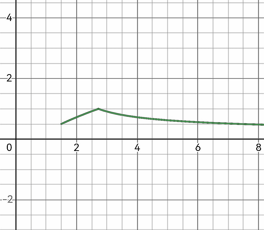 What's interesting is that \(\lambda=\frac{1}{\ln(x)*(1+\tau)}\). Here we devide by \(\lambda\) because we want to do a negative amount of time the \(\log(x+1)\) function, which gets closer and closer to tetration when you approach infinity. Here's the graph of what \(\lambda\) is in relation to x :