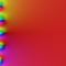 Blackholes are zeroes. Intensity towards white is magnitude toward infinity. As \(|s| \to \infty\) we have \(\zeta_G \to 1\). Phase is mapped as red towards real; and blue towards negative... The colour coding is representative of the imaginary arguments.