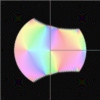 With this Fourier series sampling, it is impossible to theoretically do better than 247 decimal digits since 10^-126*0.706^800~=10^-247. And in fact, for a large chunk of the red circle of radius=0.706, I'm seeing accuracies of about 244 decimal digits with this 35 complex conjugate pair terms in the \( \theta_\R \) mapping. All points within the red circle are accurate to 1.15E-213 with this theta mapping. All points within a unit circle are accurate to within 1.5E-126, limited by the 800 terms in Jay's slog series. It is intuitive to compare the error plot below to the red circle above, and the Fourier series sample points within the red circle. Here is the error plot equation: precision is limited by the number of terms in Jays slog, and the number of terms in the \( \theta_\R \) mapping.