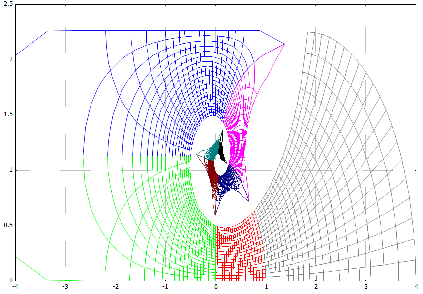 Here ist a picture which shows the mapping of the small positive part of the imaginary axis in heights of h=1/20 when computed by the "polynomial method" with the diagonalization of the 64x64 Carlemanmatrix.