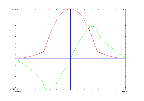 We can see this is much smoother and has no nasty corners. When we use this to get the Fourier series, however, we find that both positive and negative degree terms are required (i.e. the sum in terms of \( b_n(z) \) I gave must go from \( -\infty \) to \( \infty \) instead of from \( 0 \) to \( \infty \)), but it is significantly more accurate than the original mapping. In particular, with 203 terms (that's 101 positive and 101 negative degree terms plus the constant term), I get an error on the order of somewhat more than 10^-11 for the tetrational for imaginary-axis inputs close to 0. With 461 terms (230 positive, 230 negative), I get accuracy of around 10^-18 for close to 0, 10^-17 for inputs around \( 20i \). Clearly, this is very much improved, however I'm left wondering if it's possible a still better set of basis functions exists.