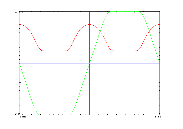The resulting mapping of the tetrational to base \( e \), \( \mathrm{tet}(f(e^{it})) \), looks like (red real, green imag):