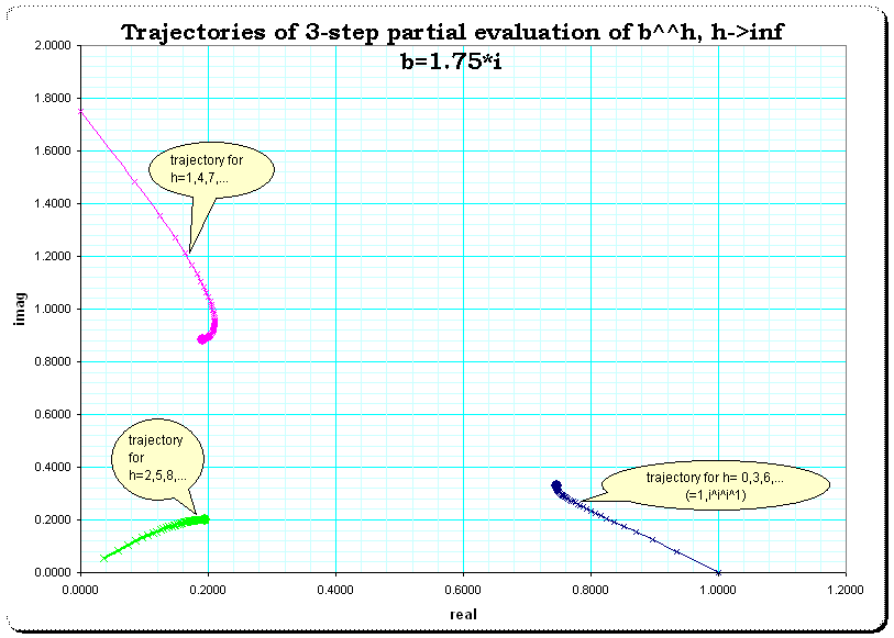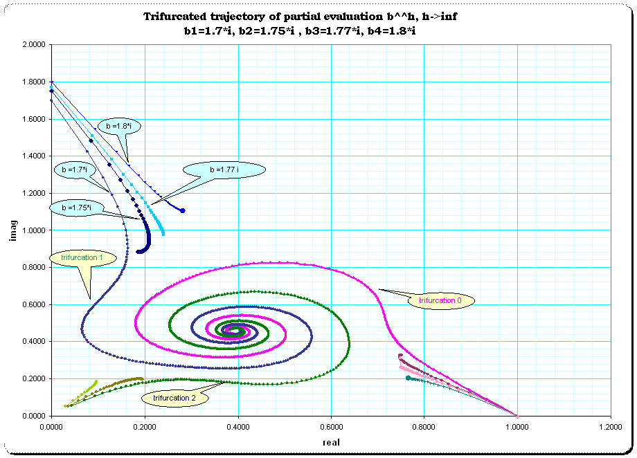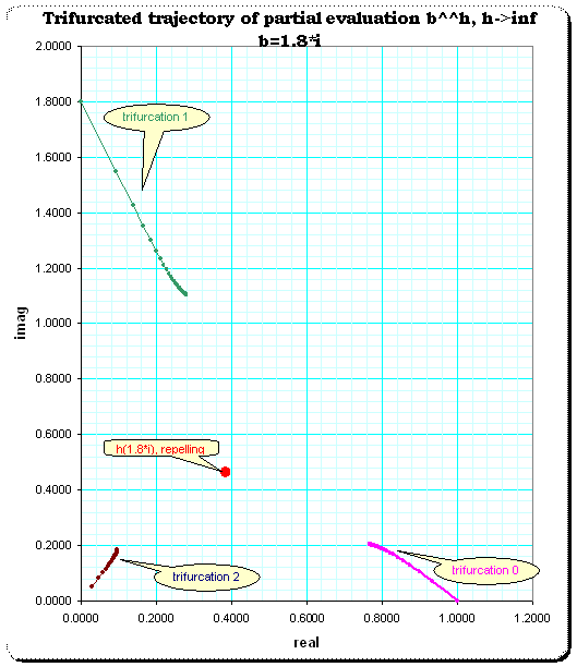 The nonconvergent trifurcation of partial evaluation with b=1.8 *i. The actual fixpoint is repelling