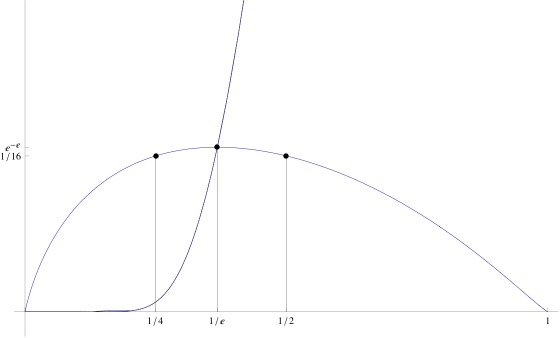 And this similarity continues to the limits, where we would map \( -\infty\mapsto 0 \), \( -1\mapsto e^{-e} \), \( 0\mapsto 1 \), \( 1\mapsto e^{1/e} \):