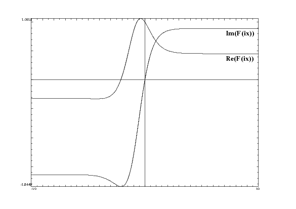 If we try it now at the natural base, base \( e \), we get \( ^{1/2} e \approx 1.64635\ \mathrm{to}\ 1.64636 \), which agrees with the results from the Cauchy integral, the Abel iteration, Kneser iteration, etc. Indeed, if we look at the graph at the imaginary axis, we see this: