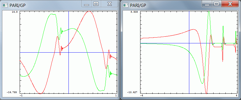 The point of this part of investigation is, to have now the possibility to invoke the Newton-iteration for the zeros and the extrema of the asum without the need of the basic, but consumptive, limit formula \( \lim_{h \to 0} { \operatorname{asum}(x+h/2)-\operatorname{asum}(x-h/2) \over h} \) which seemed to be unsatisfactory to me.