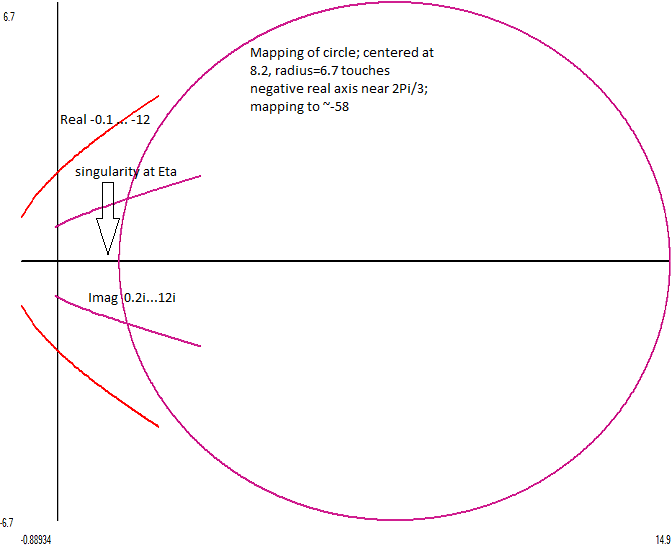I know there is a singularity at eta.  I start by sampling a circle big enough to just touch the negative real axis so I could start understanding how to solve the superroot_1.5(z).   But I also need to avoid the singularity at eta so the left edge of the circle is at 1.5 which is a little bigger than eta.  Tet_z(1.5) is analytic and one to one in this entire circle, although Tet_z(-0.5) is better behaved in terms of Taylor series approximations.