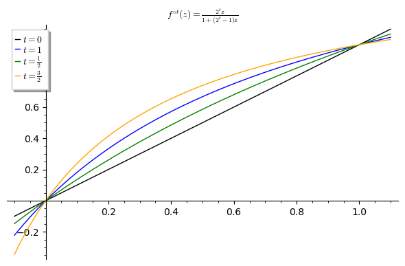\(f^{\circ t}(z)=\frac{2^tz}{1+(2^t-1)z}\)
