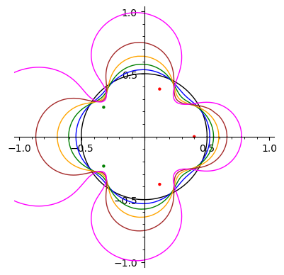 Also just for comparison the flower of the sine \(x - \frac{1}{6} x^{3} + \frac{1}{120} x^{5} - \frac{1}{5040} x^{7} + \frac{1}{362880} x^{9} + O(x^{10})\) and \({\rm valit}(\sin)=2\) so it has 4 petals: