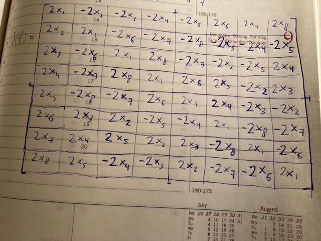 For the " tommy octonion " we have the following Jacobi matrix.
