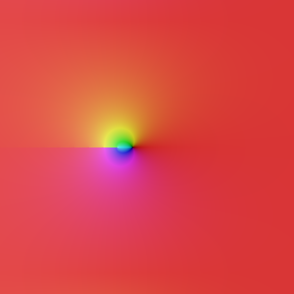 Here's a graph of \(\text{tet}_{\sqrt{2}}\) with period \(2 \pi i/\lambda = 2 \pi i/0.38\). This is just before it turns into regular iteration. The weak julia set is the bits of black/white, which will turn into nothing as we let \(\lambda \to 0.3665.... = - \log \log 2\). These are again, fractal lines and the such, a.e. this tetration converges (When we think of a lebesgue area measure).