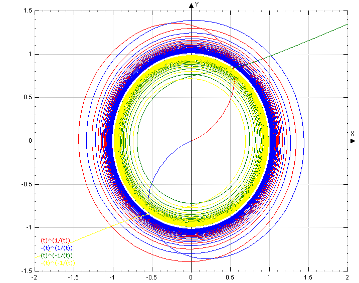 So why not define the limits using the finite tangent angles? Or their trigonometric functions, e.g tangens? The one of the outgoing/incoming spiral for infinitesimal^(1/infinitesimal), the one of the limit circle at crossing for infinity^1/infinity.