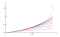 The red lines are \( {^{0.5} x} \), \( {^{1.5} x} \), \( {^{2.5} x} \), \( {^{3.5} x} \).