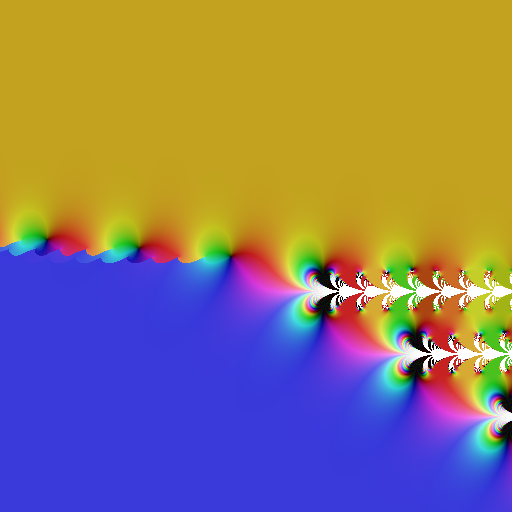 I'd hypothesize that this "alternative" solution is what the analytic continuation of the "Cauchy"/"Kneser" tetrational in the base to the STR would look like. Also, notice the strange branchpoints and cutlines in the left halfplane. The cuts and points are probably too complicated to give a simple description. If tetration ever is developed to the point where it could be a "real" special function, it'd probably be the most exotic.