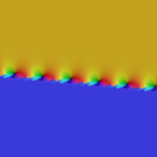 And the most astonishing thing is that this solution actually appears to exist! An experiment with the same continuum-sum Fourier method, taking the assumption the solution is holomorphic in the right half-plane (implementing the Fourier expansion along the imaginary axis is equivalent to this and must exclude the regular as it has singularities that are at minimum arbitrarily close to the axis, which'd mean a Fourier expansion of zero convergence width), and then gradually stepping back the base, using the already-calculated solution as an initial guess, we get this: